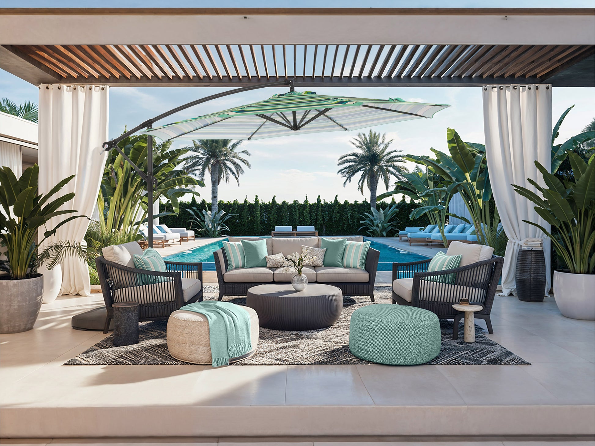 Enjoy your patio all season with the offset UV-resistant umbrella. The design makes it easy to open and lift with the crank style handle and the UV-resistant umbrella is constructed with heavy-duty polyester fabric. A powder-coated aluminum frame and cross base provide support while you relax in the shade. Functional and stylish, this umbrella is ideal for those hot summer days. The canopy offers complete shade with a vent to facilitate airflow, It's the perfect addition to any patio setup!Product Specifications
