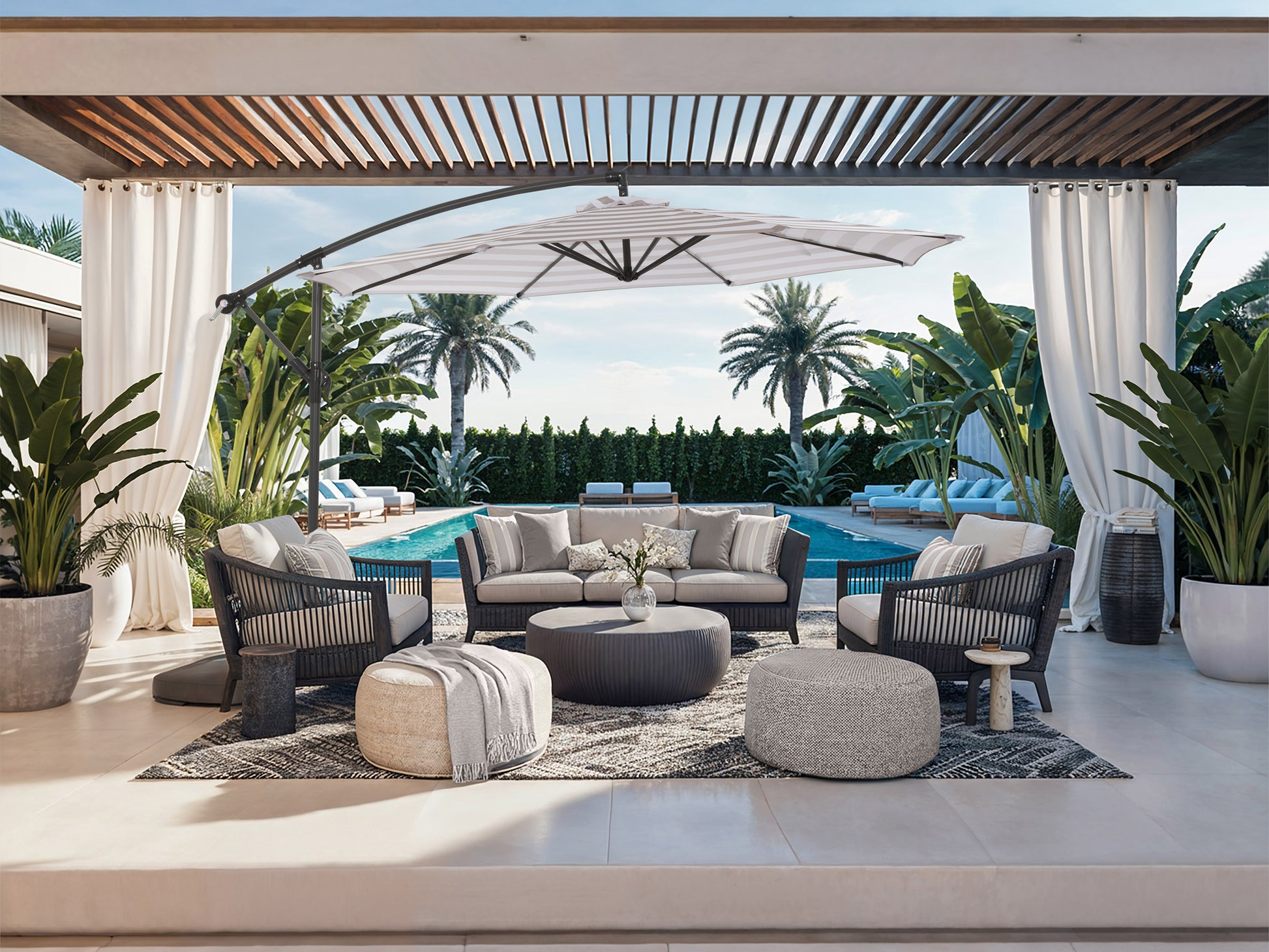 Enjoy your patio all season with the offset UV-resistant umbrella. The design makes it easy to open and lift with the crank style handle and the UV-resistant umbrella is constructed with heavy-duty polyester fabric. A powder-coated aluminum frame and cross base provide support while you relax in the shade. Functional and stylish, this umbrella is ideal for those hot summer days. The canopy offers complete shade with a vent to facilitate airflow, It's the perfect addition to any patio setup!Product Specifications