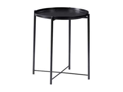 Make a statement in your living room with our Ayla end table. This round side table with a removable tray has a chic, mid‐century modern feel that will complement any home décor. The removable tray top is durable, functional, and convenient, and sleek black metal legs complete the look. Easy to assemble and easy to style this is the perfect supporting act to any living space.Product Specifications