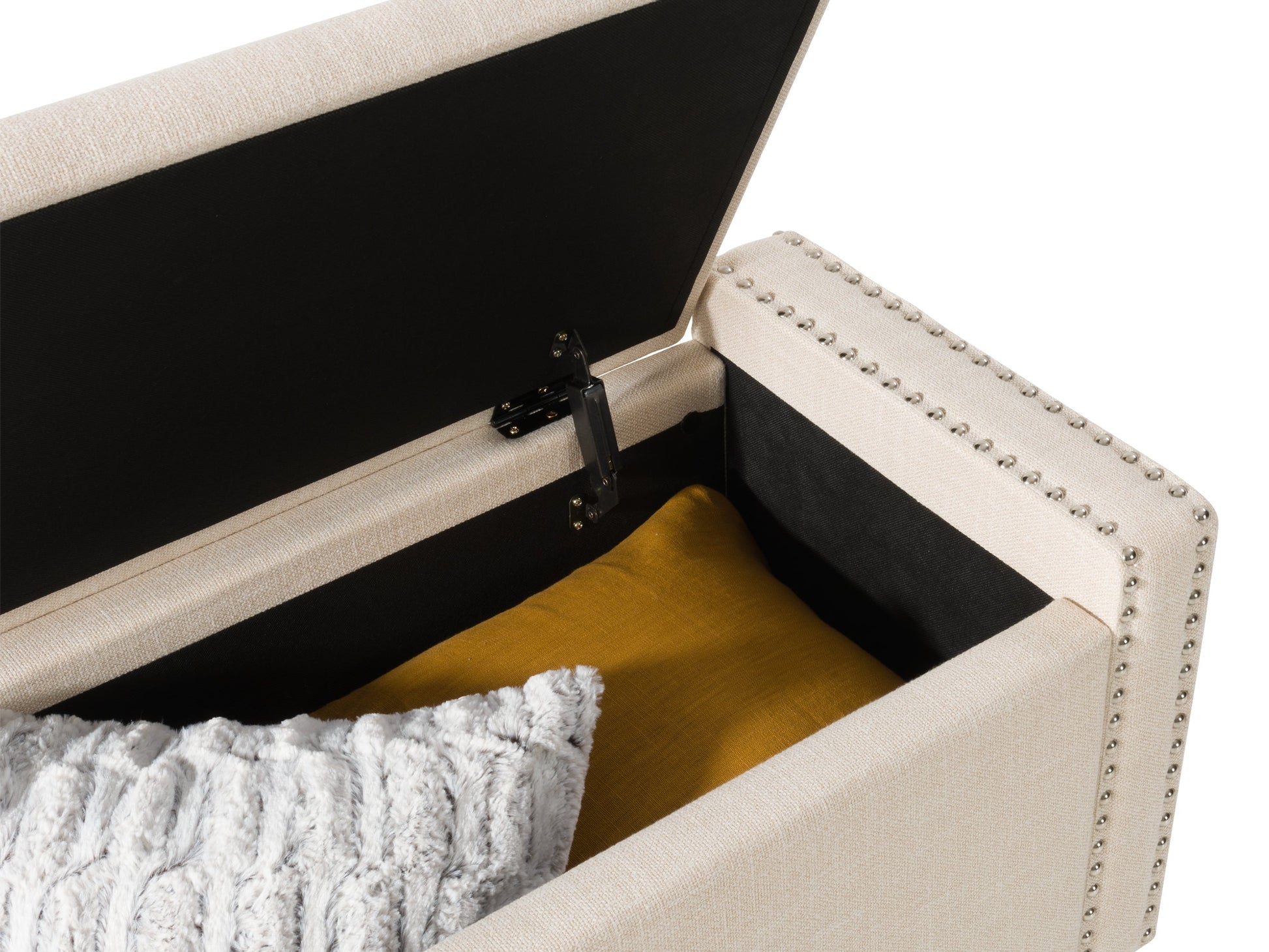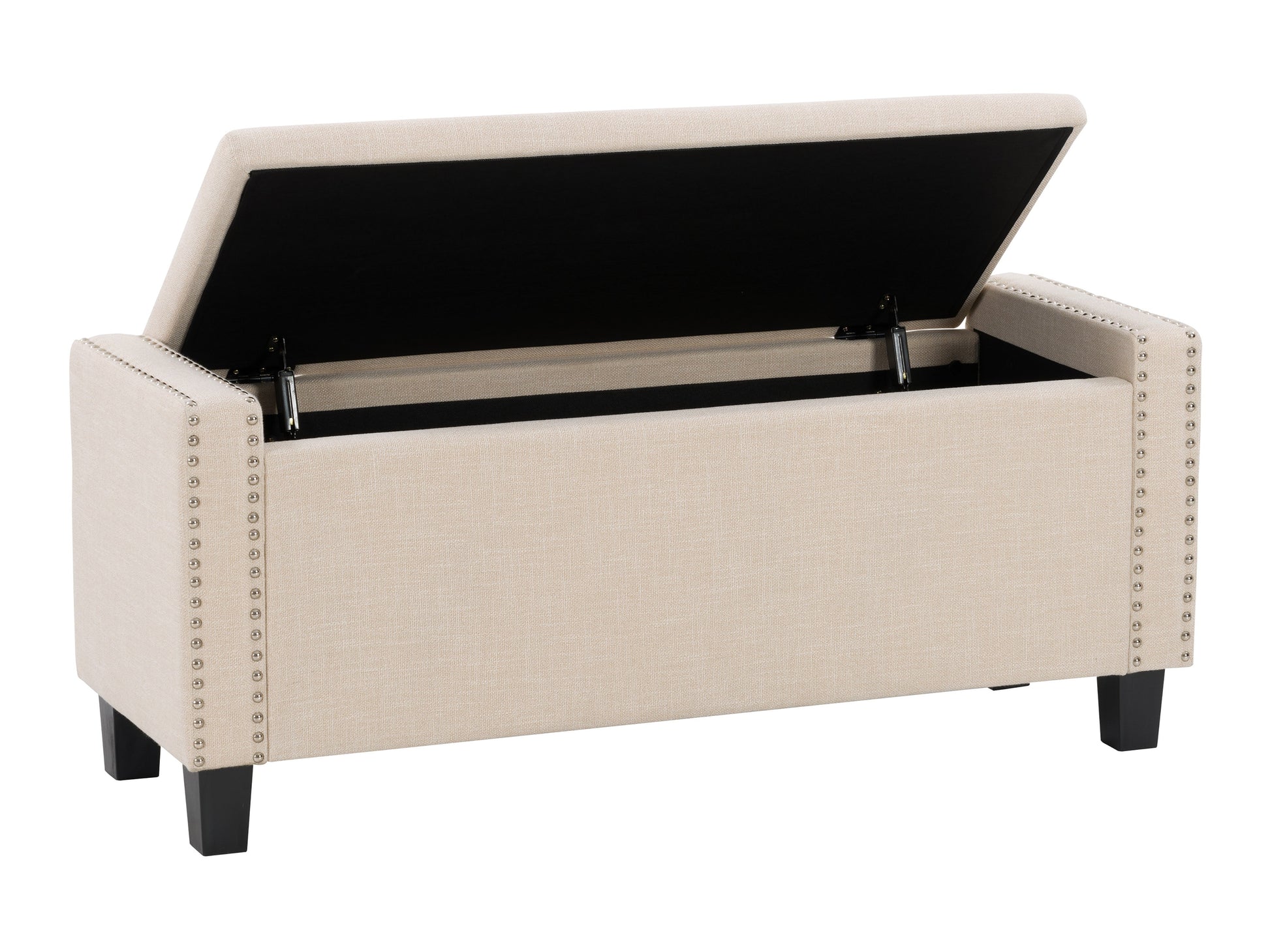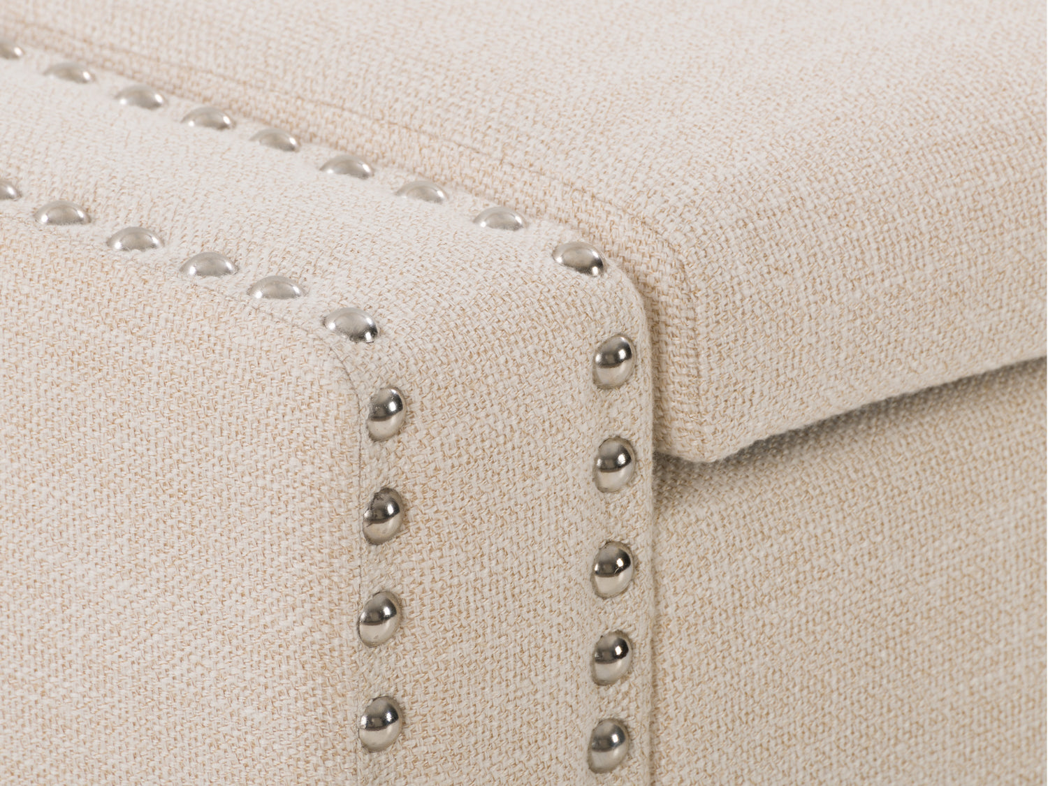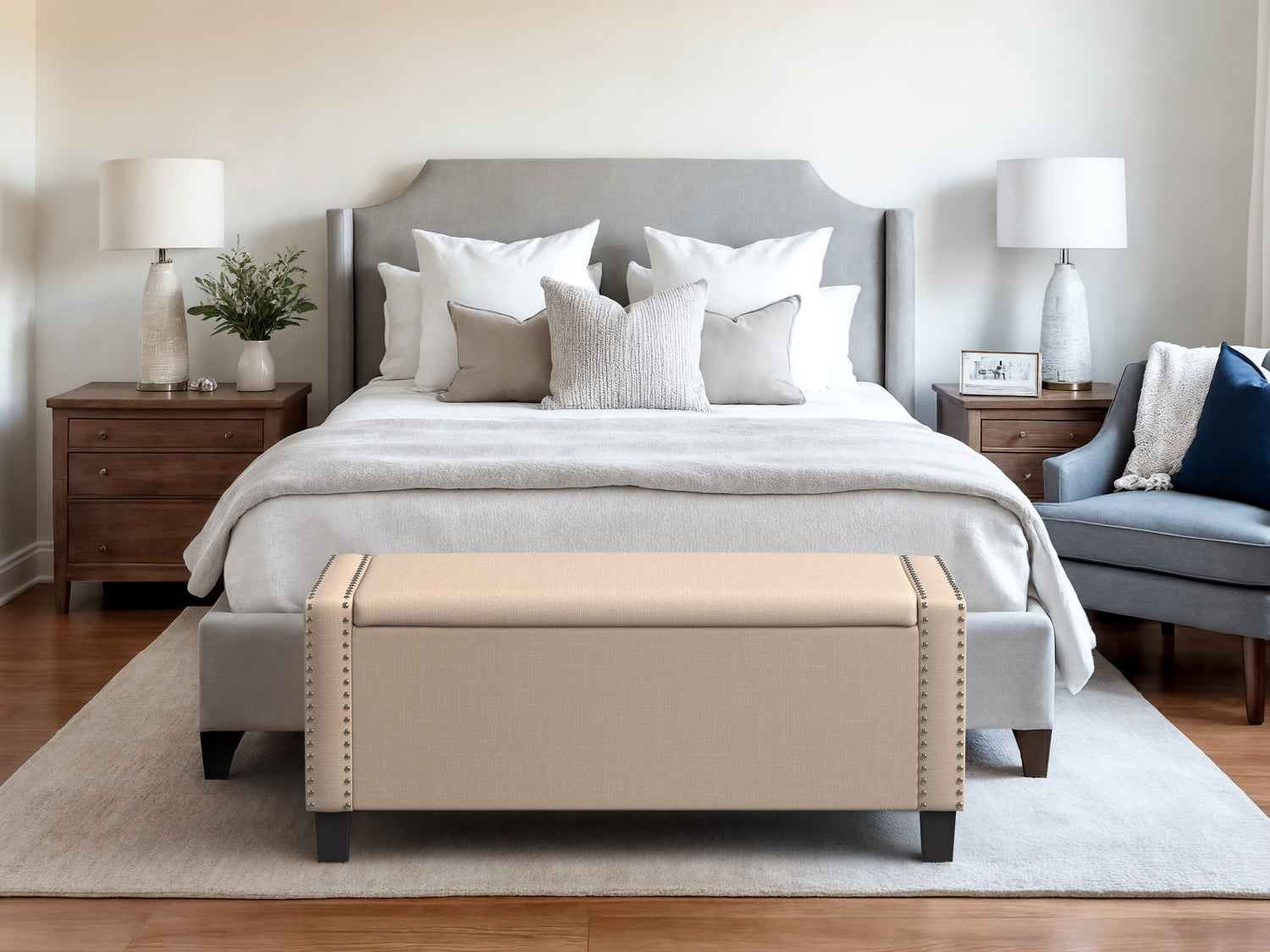 Experience this meticulously crafted bench's perfect fusion of refined design and purposeful storage. The classic silhouette, adorned with handcrafted nailhead trim and wrapped in sumptuous upholstery, speaks to a legacy of fine furniture making. Each detail has been carefully considered to create a piece that elevates your space while providing the intelligent storage solutions that modern living demands.