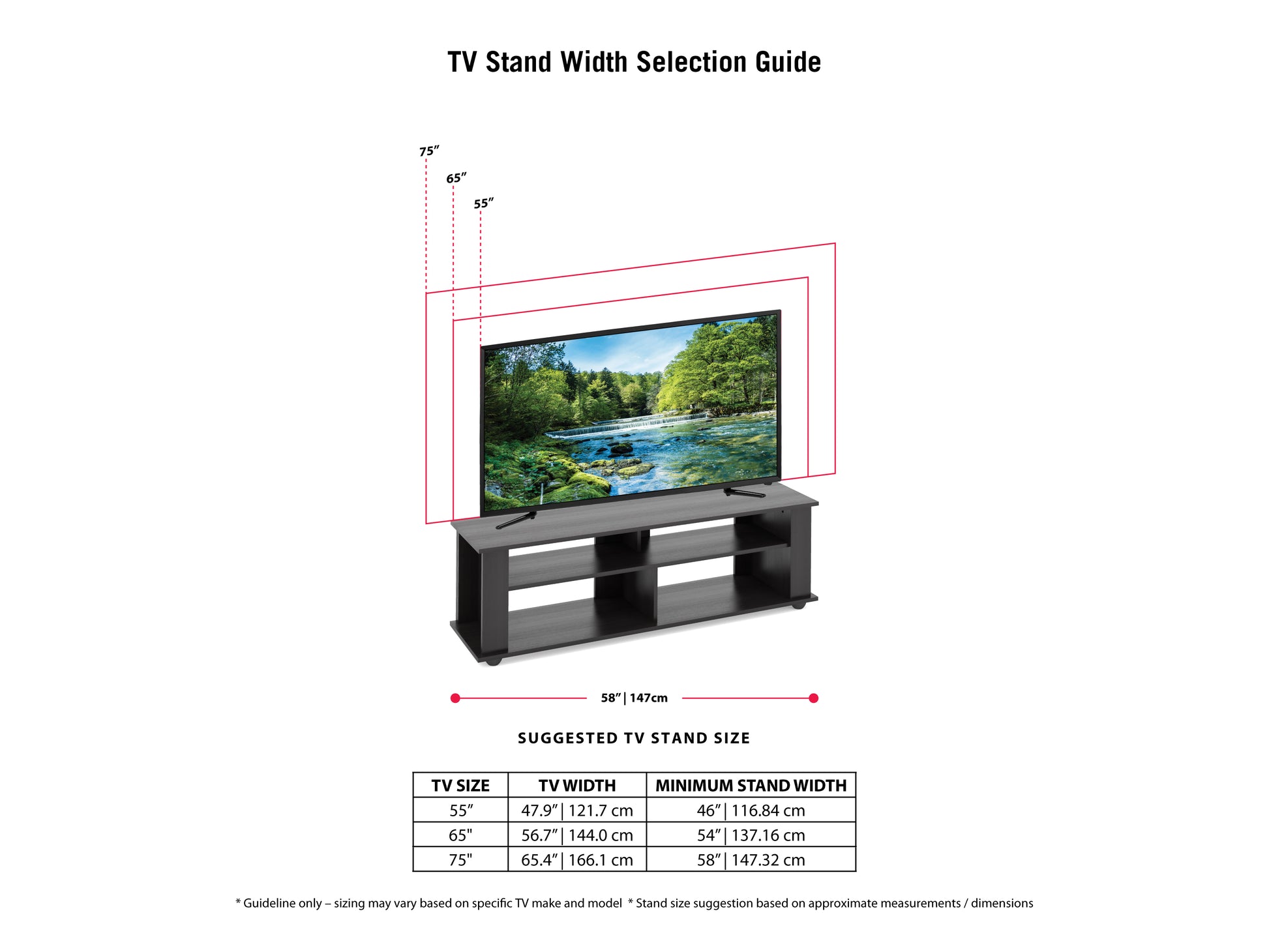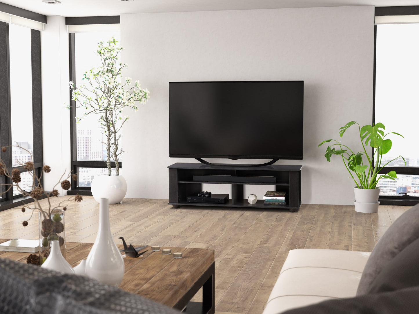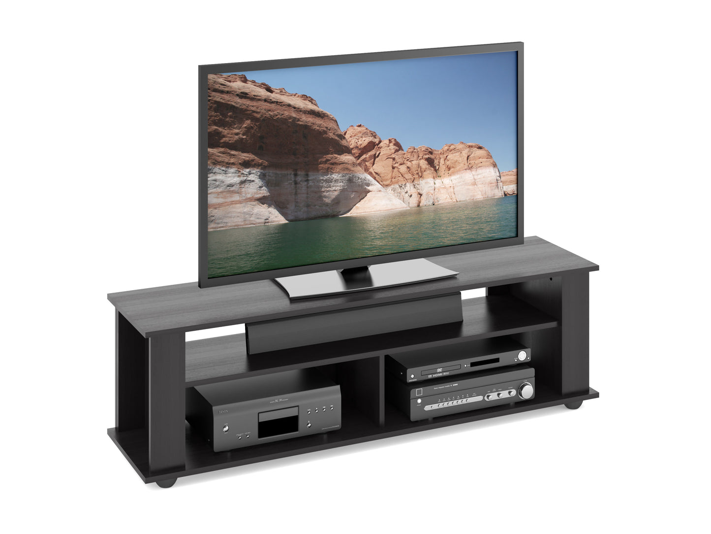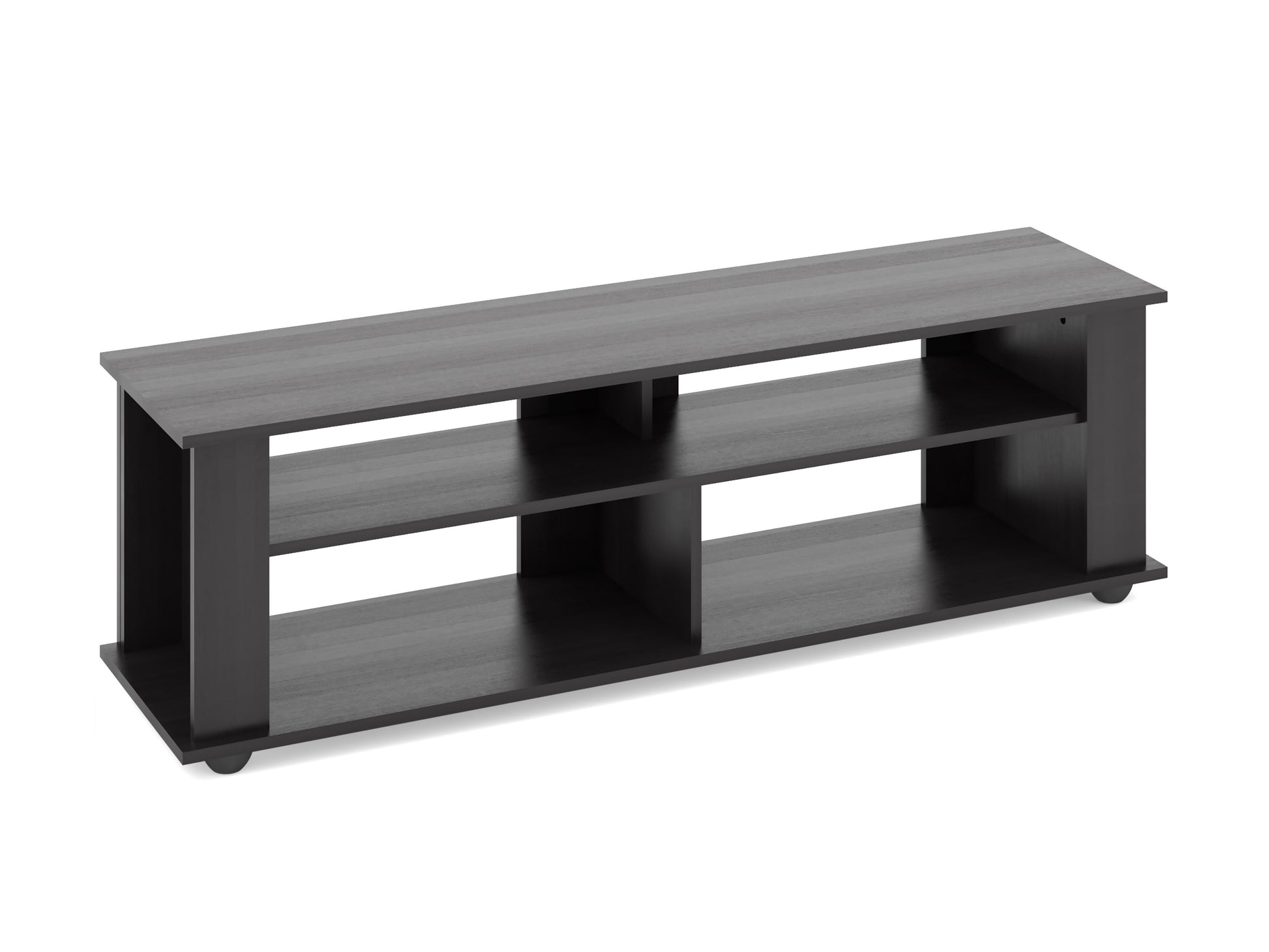 Enhance your living space with the contemporary design of the TBF‐605‐B TV Stand from the Bakersfield Collection by CorLiving. Enjoy the generous open storage space perfect for housing all of your A/V equipment, and crucial breathing room for all of your high valued electronics allowing them to perform at their full potential. Featured in our Black Ravenwood finish this transitional stand can accommodate most TVs up to 75". Bring home this contemporary furniture proudly built by CorLiving.Product Specifications