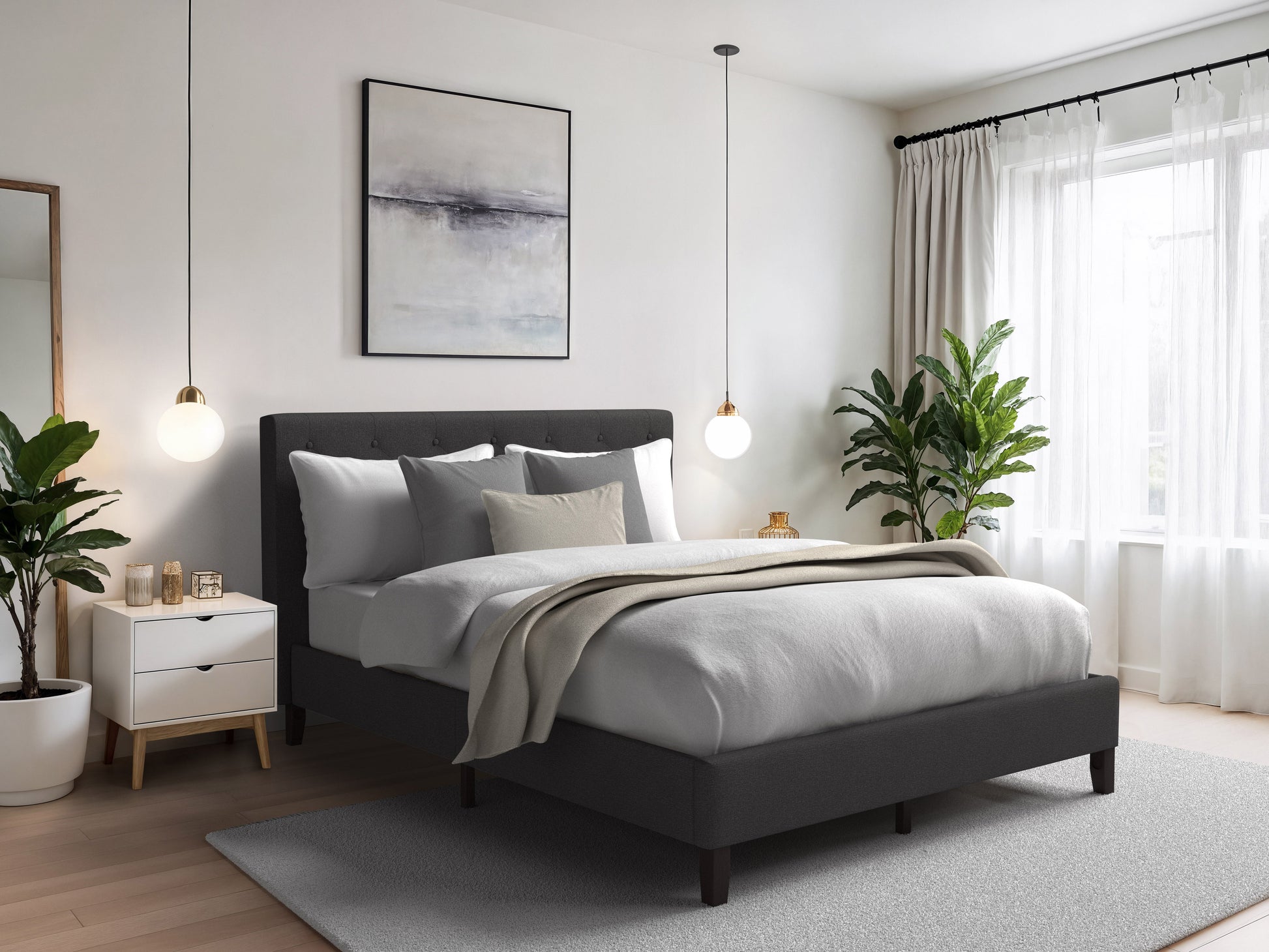 Imagine starting each day surrounded by understated luxury. This bed isn't just a place to sleep; it's a sanctuary. The clean lines and versatile color options make it a breeze to integrate into your existing décor. At the same time, the fully upholstered frame creates a cohesive, sophisticated look that transforms your entire room. Whether you're winding down with a good book or enjoying a lazy weekend morning, you'll appreciate the thoughtful details.