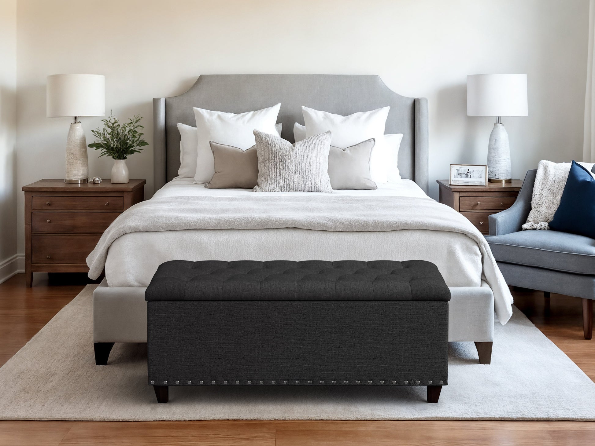 The versatility of this piece truly sets it apart, offering sophisticated seating and concealed storage that adapts to your evolving needs. Whether gracing a master suite, adding elegance to an entryway, or providing additional seating in a sitting room, it contributes both purpose and refinement. The premium foam padding and precise tufting create a comfortable seat for daily moments, while three carefully curated color options ensure perfect harmony with your existing décor.