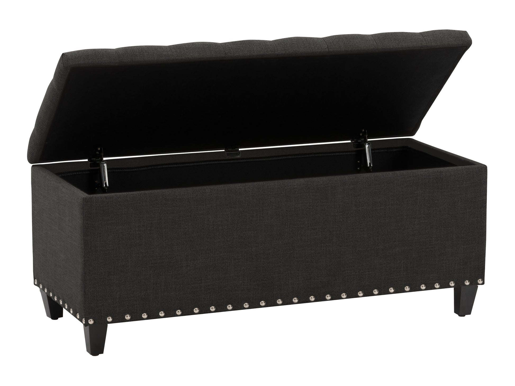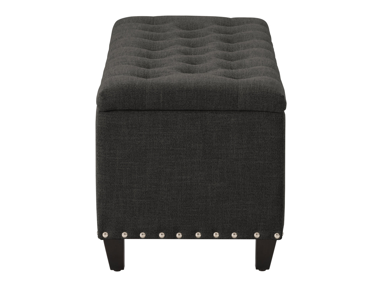 Discover this meticulously detailed storage bench's perfect marriage of classic design and modern functionality. The deep diamond tufting, a hallmark of traditional furniture craftsmanship, creates an elegant visual rhythm across the generously padded seat. This timeless detail is complemented by precisely placed nailhead trim, adding a sophisticated border that speaks to the bench's exceptional quality.