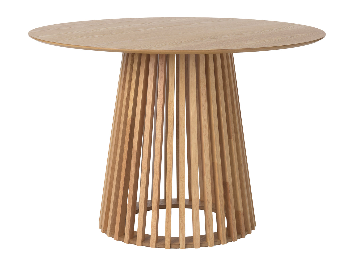Its round tabletop invites conversation, while the intricate pedestal base turns function into art. Crafted from durable engineered wood with a richly textured China Ash veneer, the Elowen blends timeless warmth with architectural sophistication. Every detail—from the grain‐matched surface to the carefully angled base—adds to its refined presence in your home.