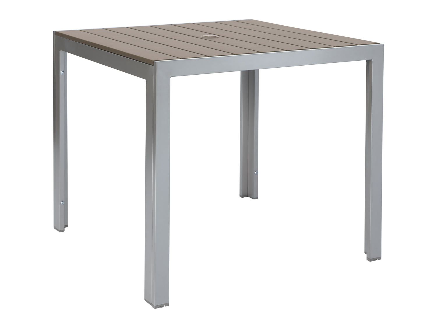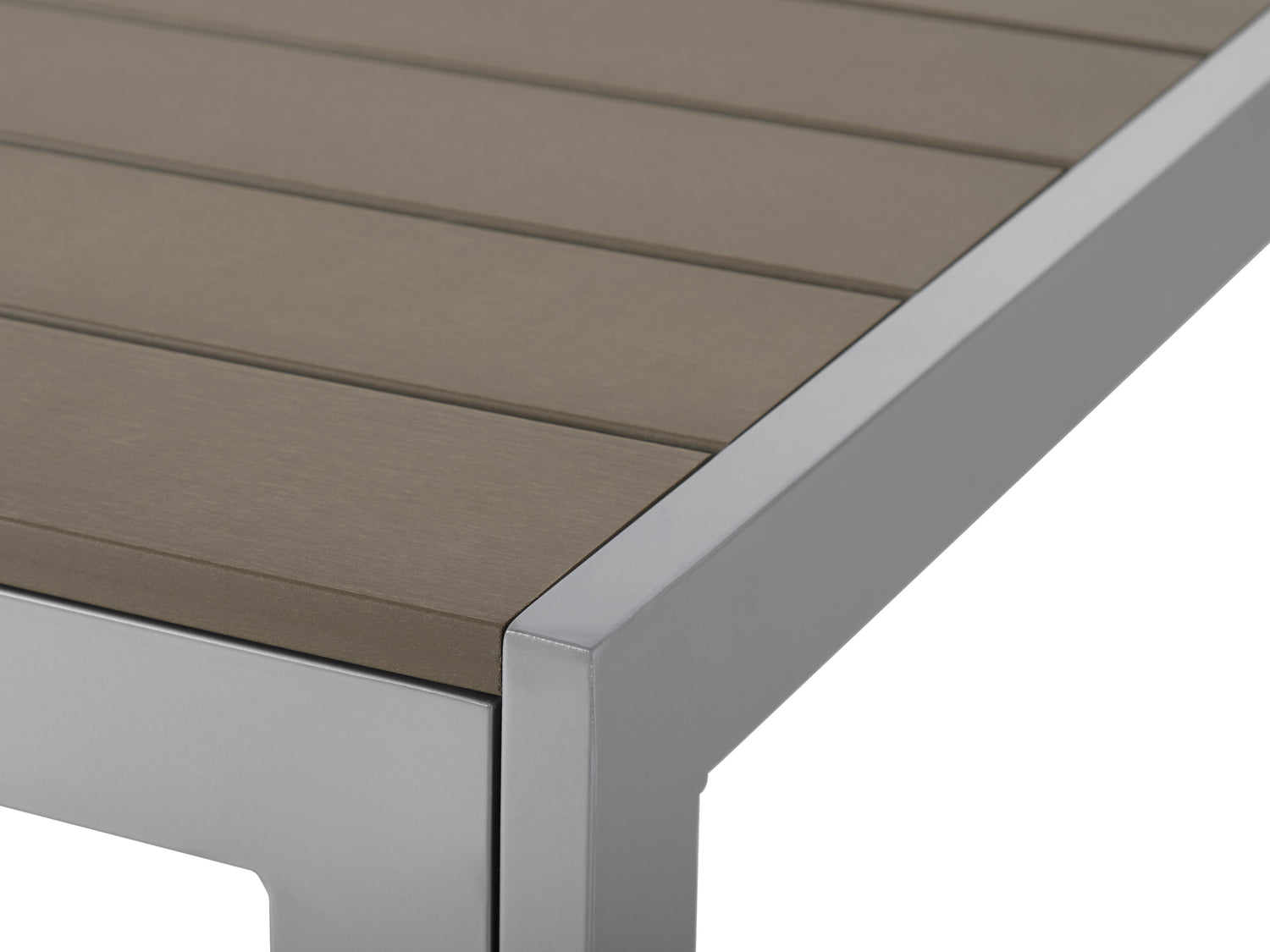 The Gallant 4‐Top Patio Table delivers modern design in a compact, functional form. Built with a silver‐gray aluminum frame and taupe poly‐wood slats, it offers a sleek, low‐maintenance surface that fits seamlessly into balconies, patios, or smaller deck spaces.