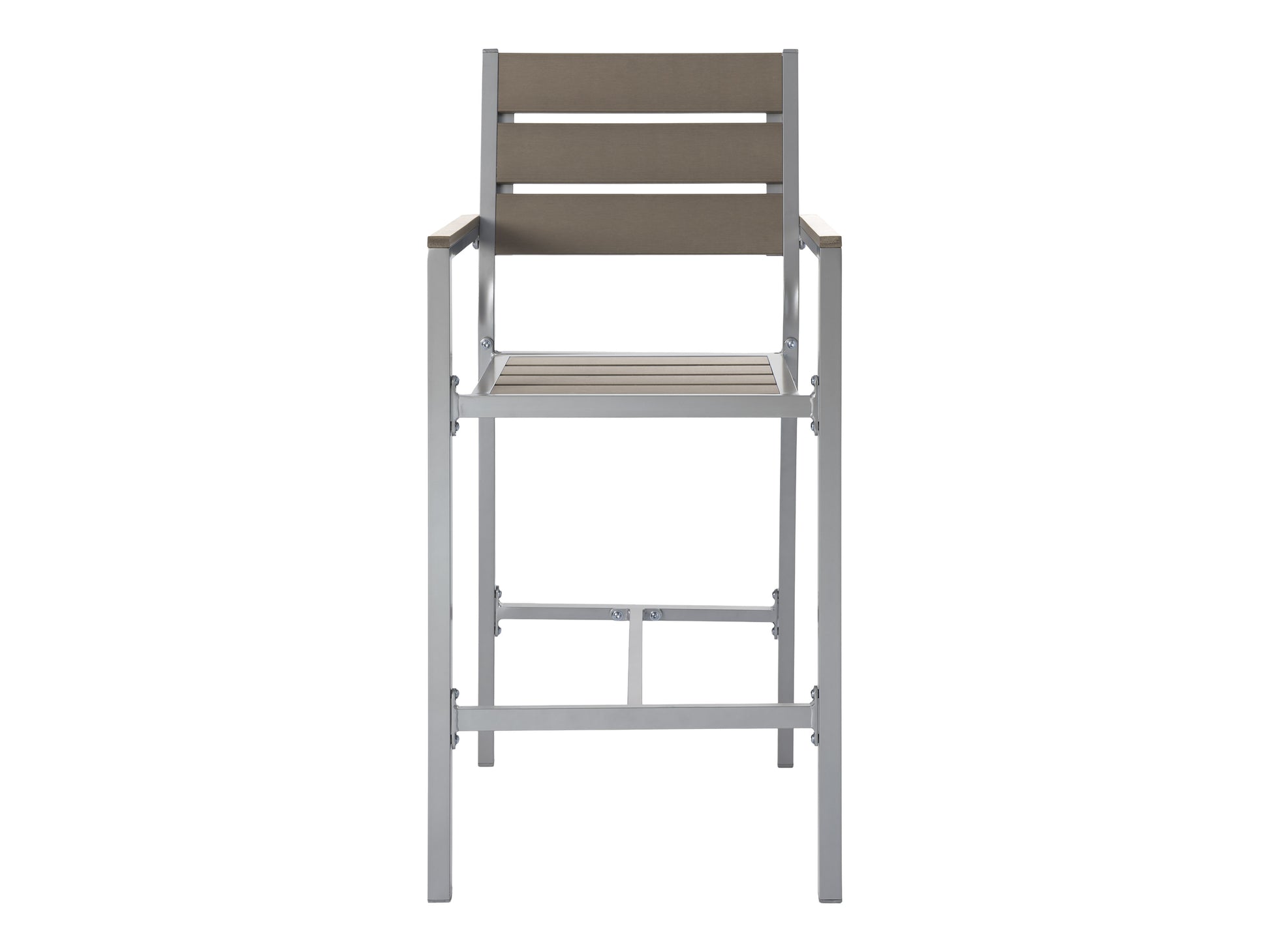 The Gallant Bar‐Height Chair brings all the ease of a patio classic—just raised a little higher. Designed with the same silver‐gray aluminum frame and taupe faux‐wood slats as its standard‐height counterpart, it offers a cohesive look across your outdoor space while giving you a fresh, elevated perspective.