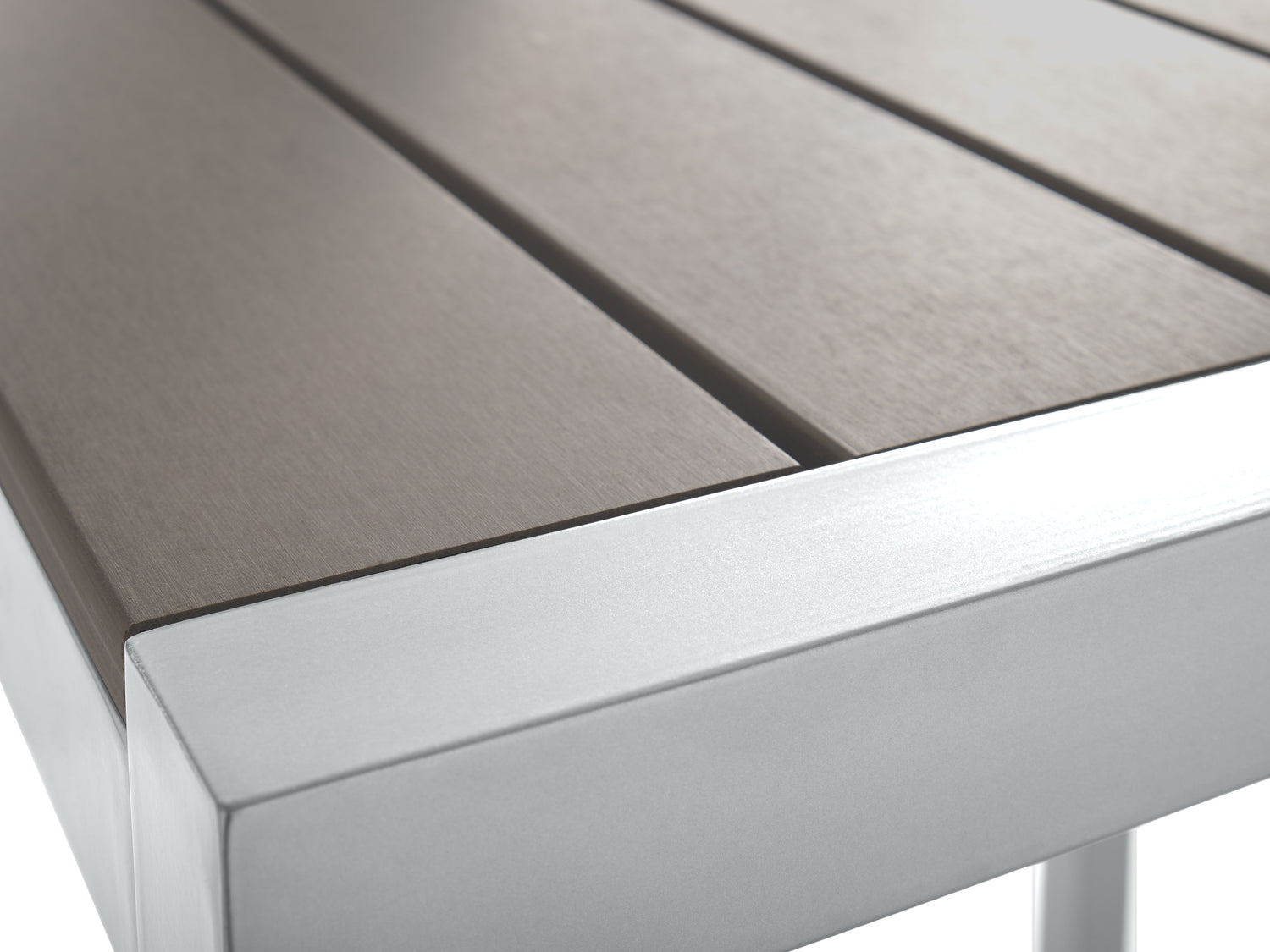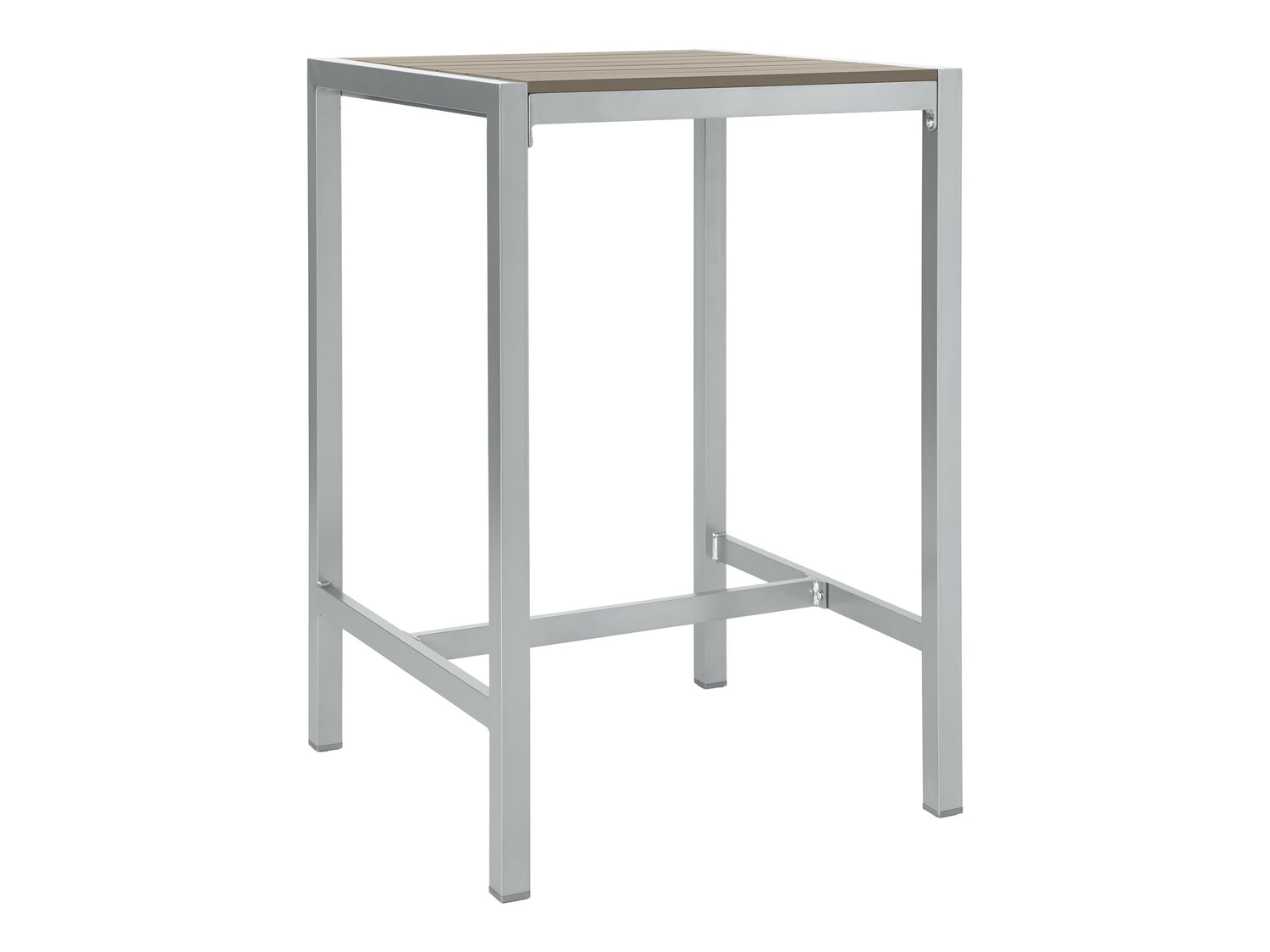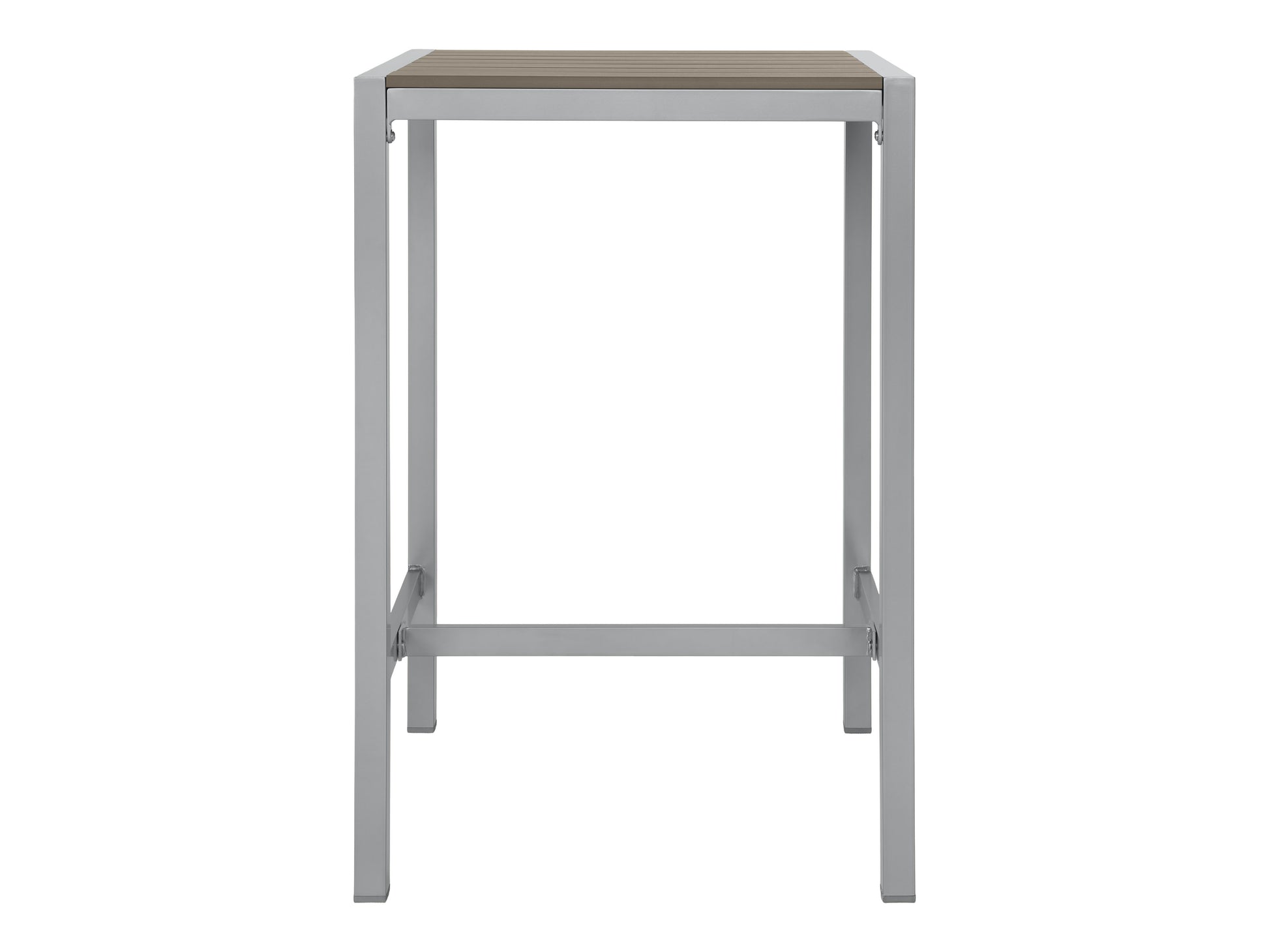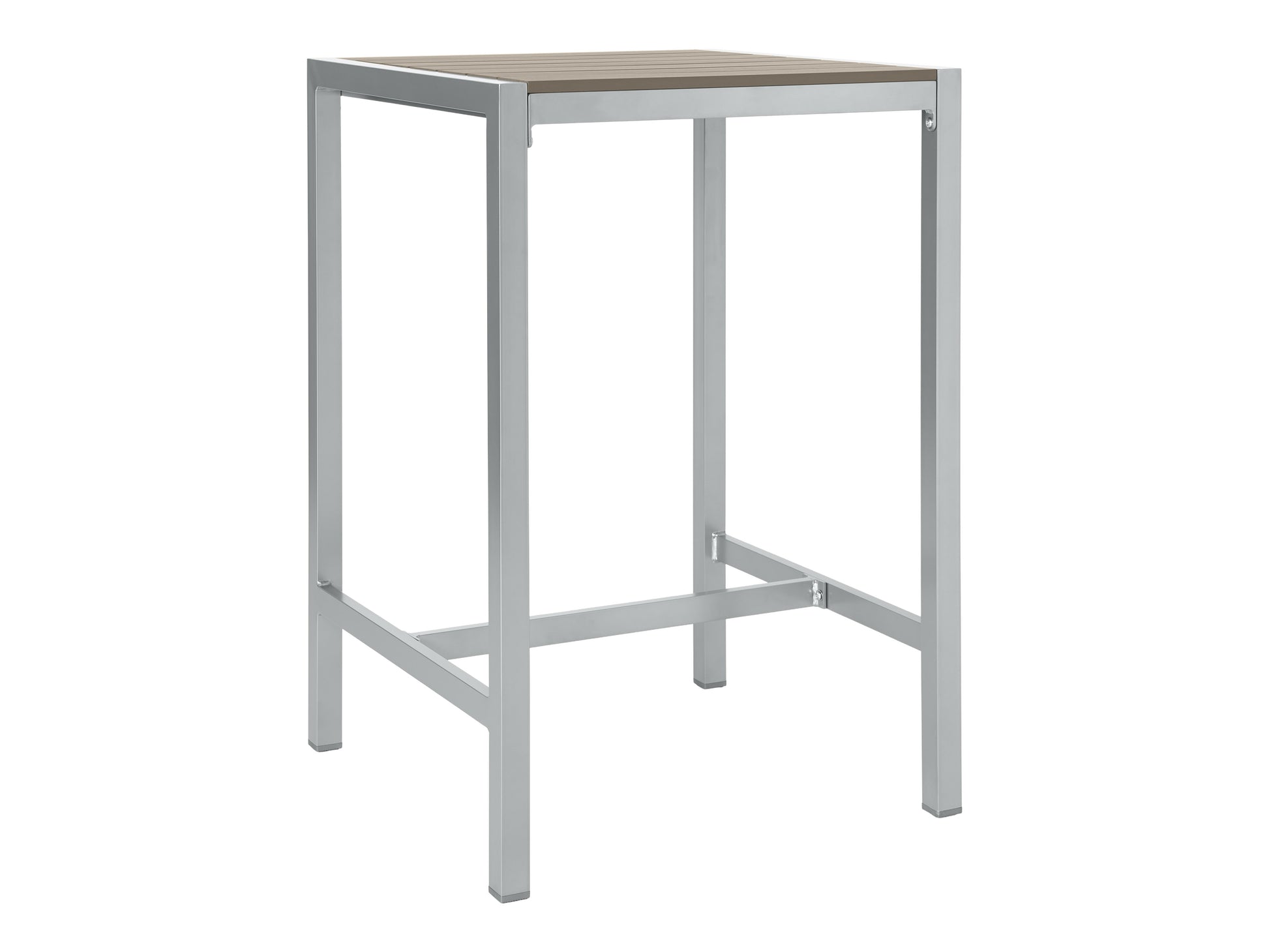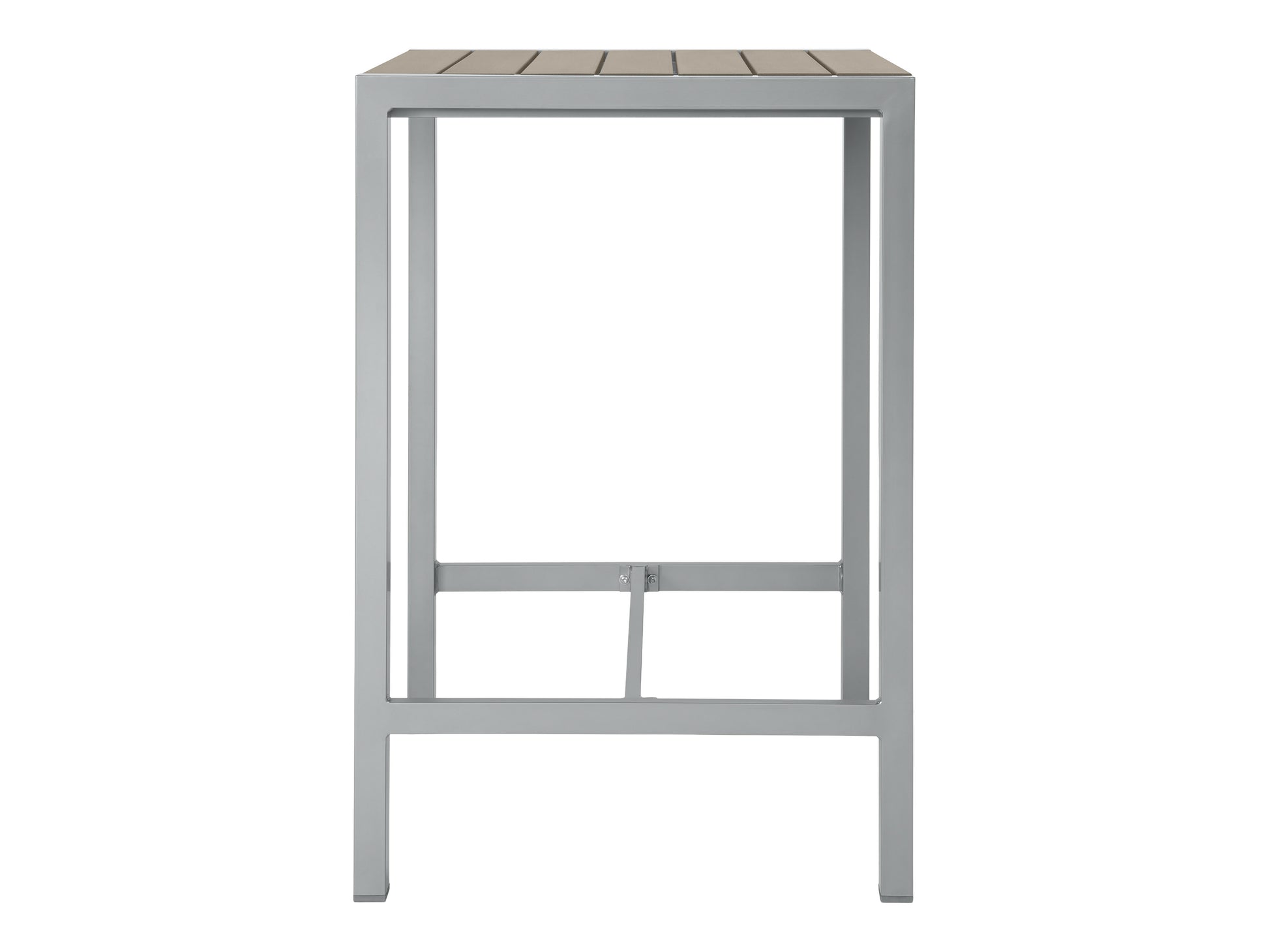The Gallant Bar Table raises the bar—literally and stylistically. With its silver‐gray aluminum frame and taupe poly‐wood slats, it matches the clean‐lined aesthetic of the rest of the Gallant Collection while adding a taller, café‐inspired twist.