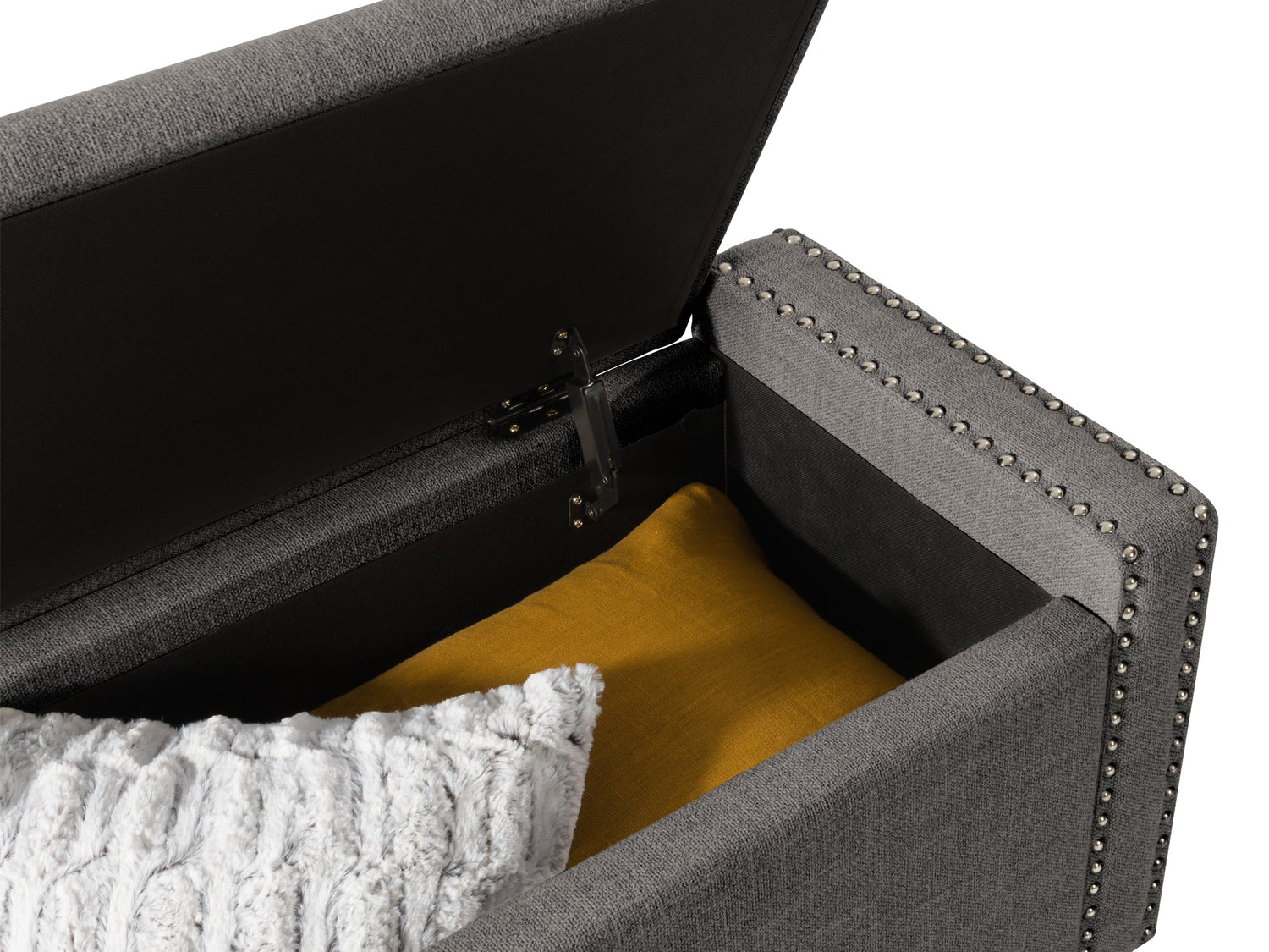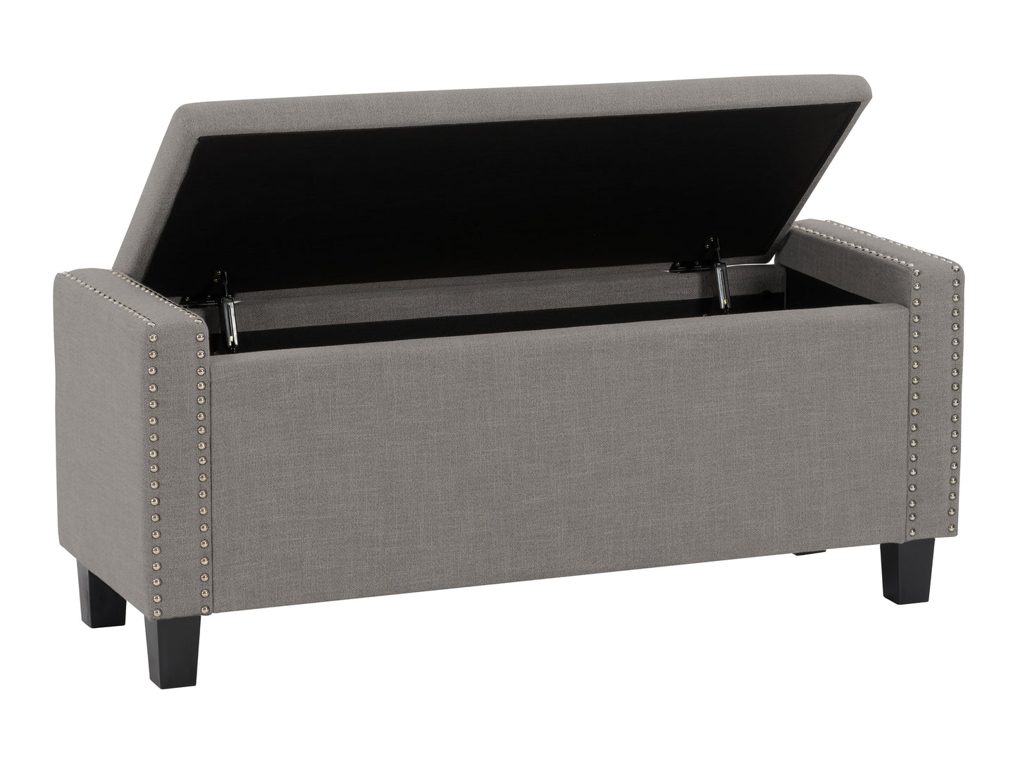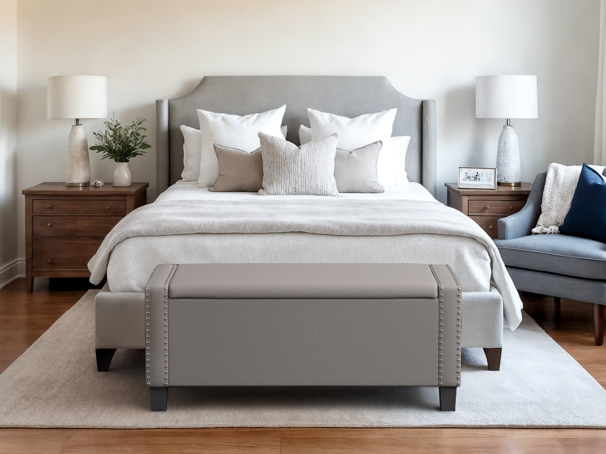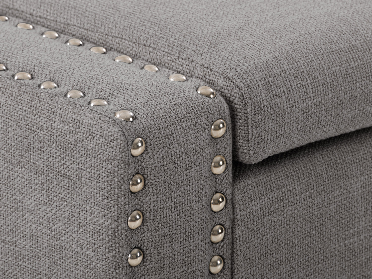 Experience this meticulously crafted bench's perfect fusion of refined design and purposeful storage. The classic silhouette, adorned with handcrafted nailhead trim and wrapped in sumptuous upholstery, speaks to a legacy of fine furniture making. Each detail has been carefully considered to create a piece that elevates your space while providing the intelligent storage solutions that modern living demands.