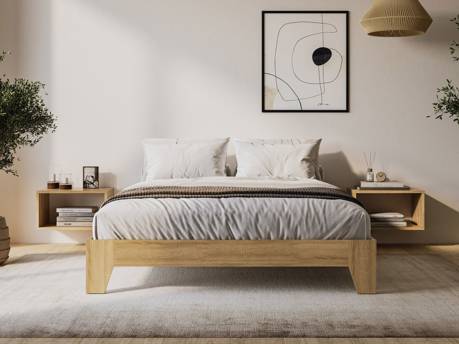 Transform your bedroom into a haven of modern elegance with the Aiko Bed. This minimalist masterpiece features a sleek, contemporary design that complements any decor style. The natural wood finish, crafted from high‐quality materials, showcases beautiful variations and unique grain patterns, adding a touch of organic charm to your space. The Aiko Bed's aesthetic appeal matches its solid construction, ensuring long‐lasting support and stability for a restful night's sleep.