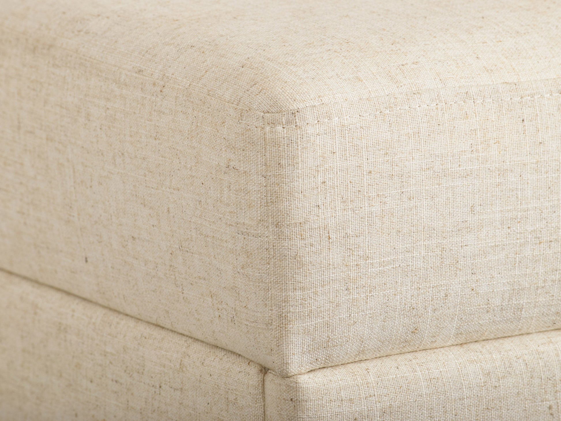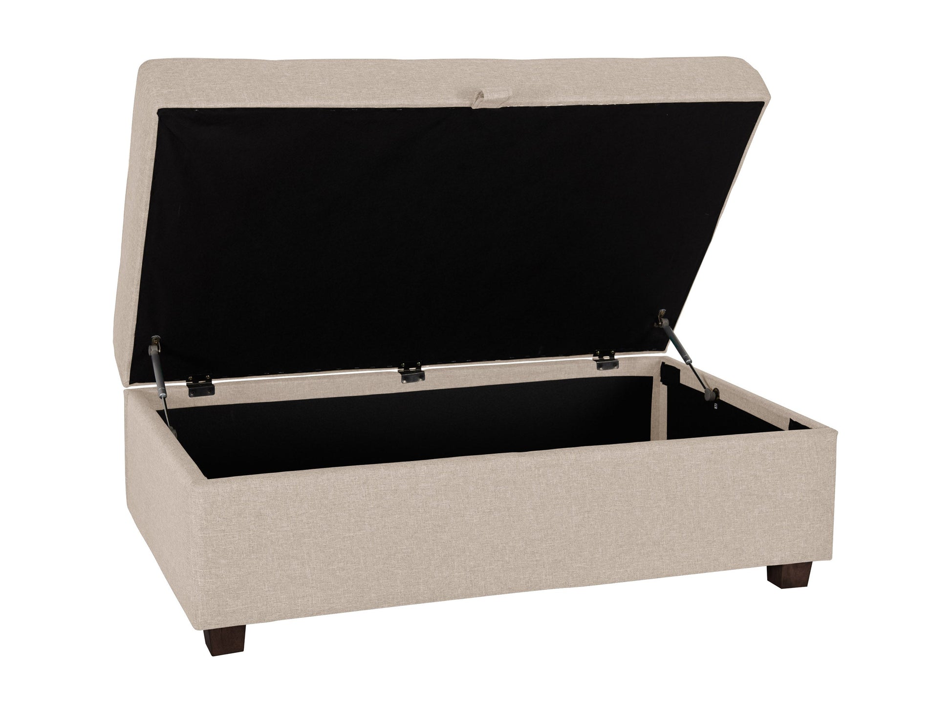 - A large storage ottoman with a modern style, designed to fit any décor.