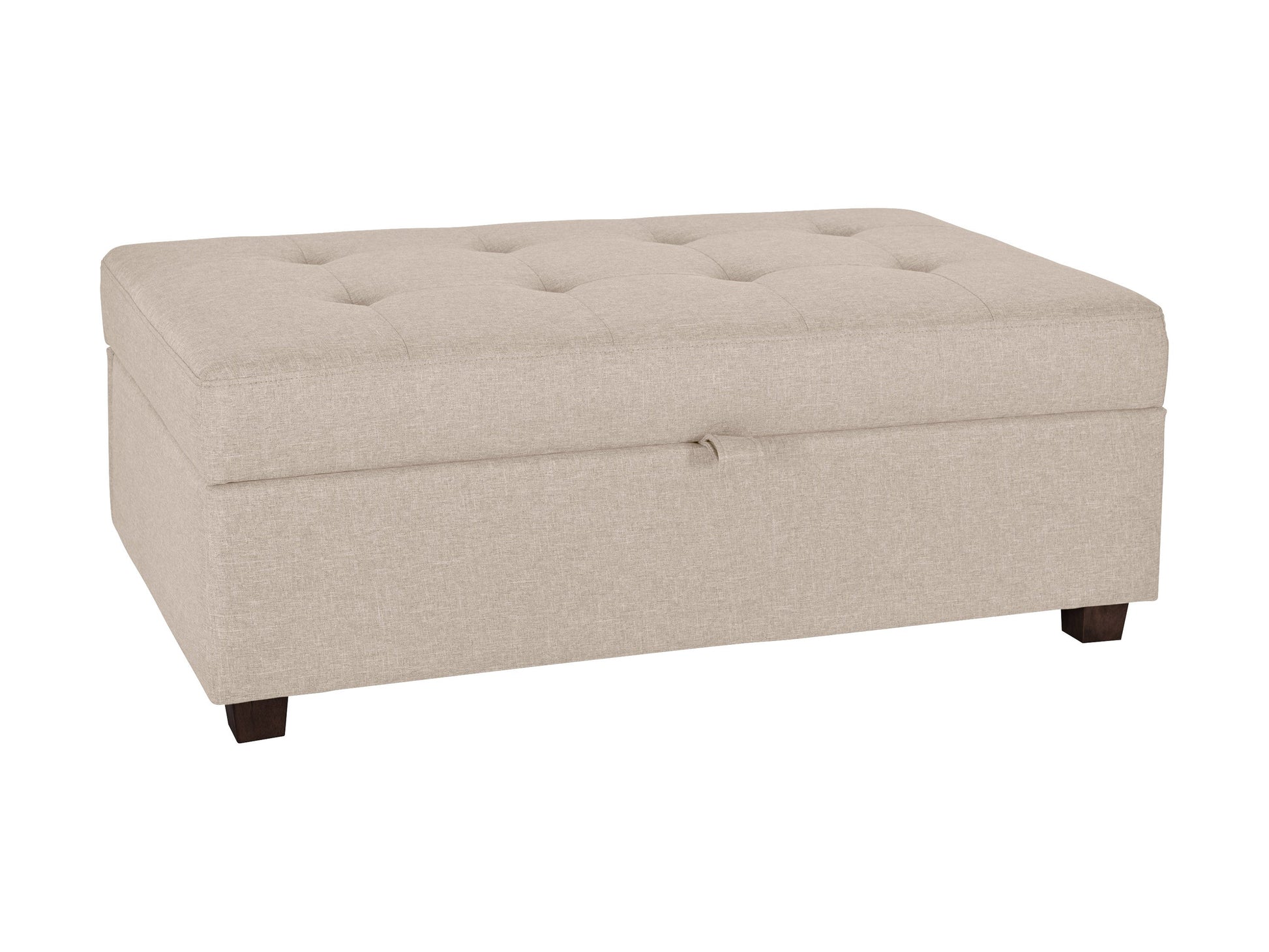 The Aubin Ottoman is designed with a modern style that works in any room of your home. The button-tufted design is a pleasing accent to the overall look, while the rectangular shape makes it perfect to use as a storage coffee table in your living room. There's plenty of space to hold anything you'd like to tuck away, allowing you to keep your area clean and organized. Upholstered in a durable polyester fabric that's easy to keep clean, it's the ideal addition to any modern home's decor. So take a seat, put your feet up, and enjoy the comfy foam cushioning our large storage ottoman provides.Product Specifications