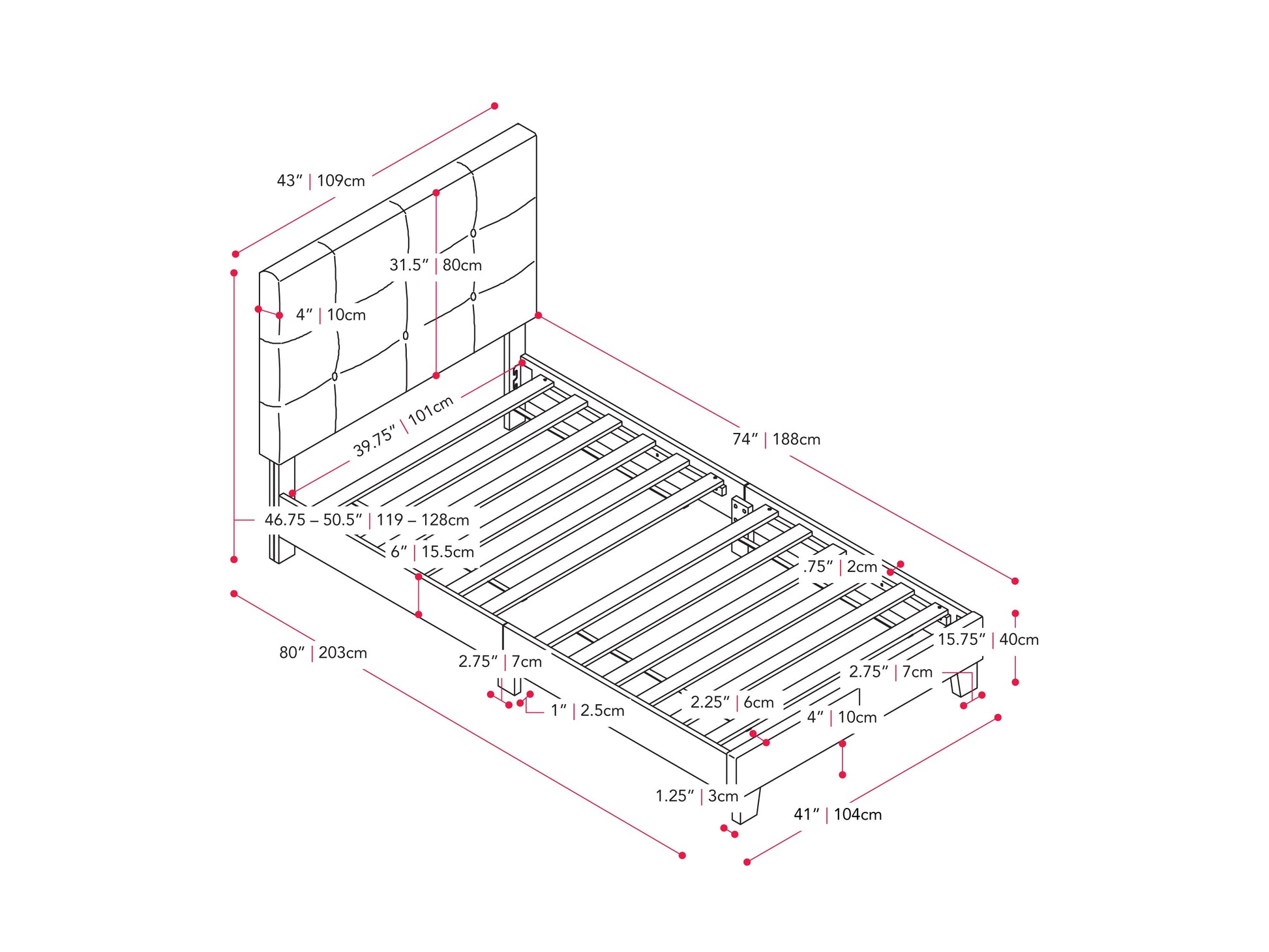 Experience the perfect blend of form and function, engineered for comfort and convenience. The generously padded headboard invites you to lean back and relax, whether reading your favorite novel or enjoying a peaceful morning in bed. Built with a robust slat support system and center leg stability, this bed eliminates the need for a box spring while providing unwavering support for virtually any mattress height you choose.