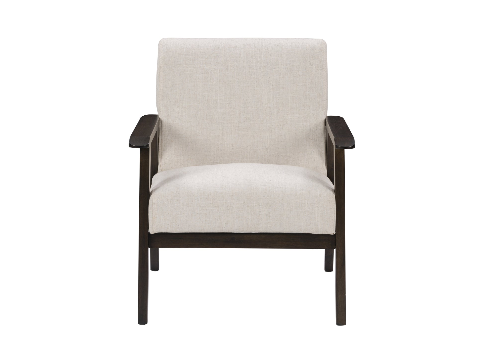 In the realm of distinguished design, true sophistication lies in the harmonious balance of form and function. This masterfully crafted accent chair embodies the essence of mid-century modern architecture while elevating it through contemporary engineering precision. The clean lines of the solid wood frame create a commanding presence, while the expertly tailored upholstery adds a layer of refined luxury that speaks to its heritage of craftsmanship. Every aspect of this chair has been meticulously considered, from the precise angle of the backrest to the thoughtfully proportioned seat height. The architectural frame, featuring hand-finished wood with subtle detailing, provides more than just structural integrity – it offers a visual testament to the artisanal quality that sets genuinely premium furniture apart. With its sophisticated texture and tailored appearance, the upholstery wraps the ergonomically engineered form in a layer of understated elegance. Within your carefully curated space, this chair is more than mere seating. It's a statement of discerning taste and appreciation for authentic design. Whether positioned in a sunlit reading nook or paired with an executive desk, its presence elevates the entire room. The intentionally scaled dimensions create a perfect balance of presence and restraint, while the neutral palette ensures seamless integration with your existing collection of distinguished furnishings.Product Specifications