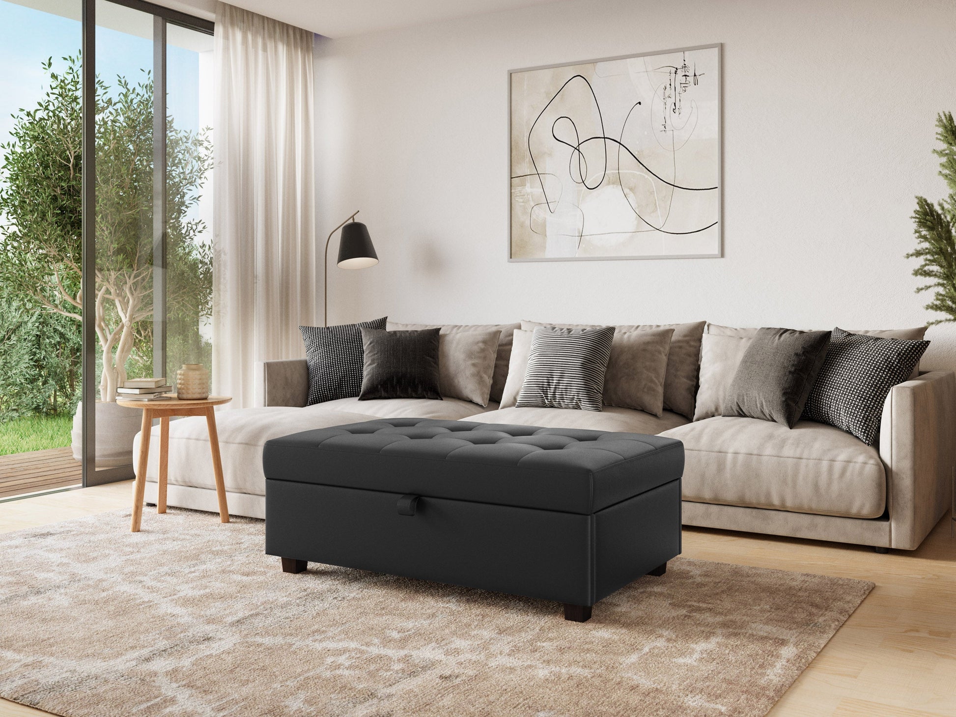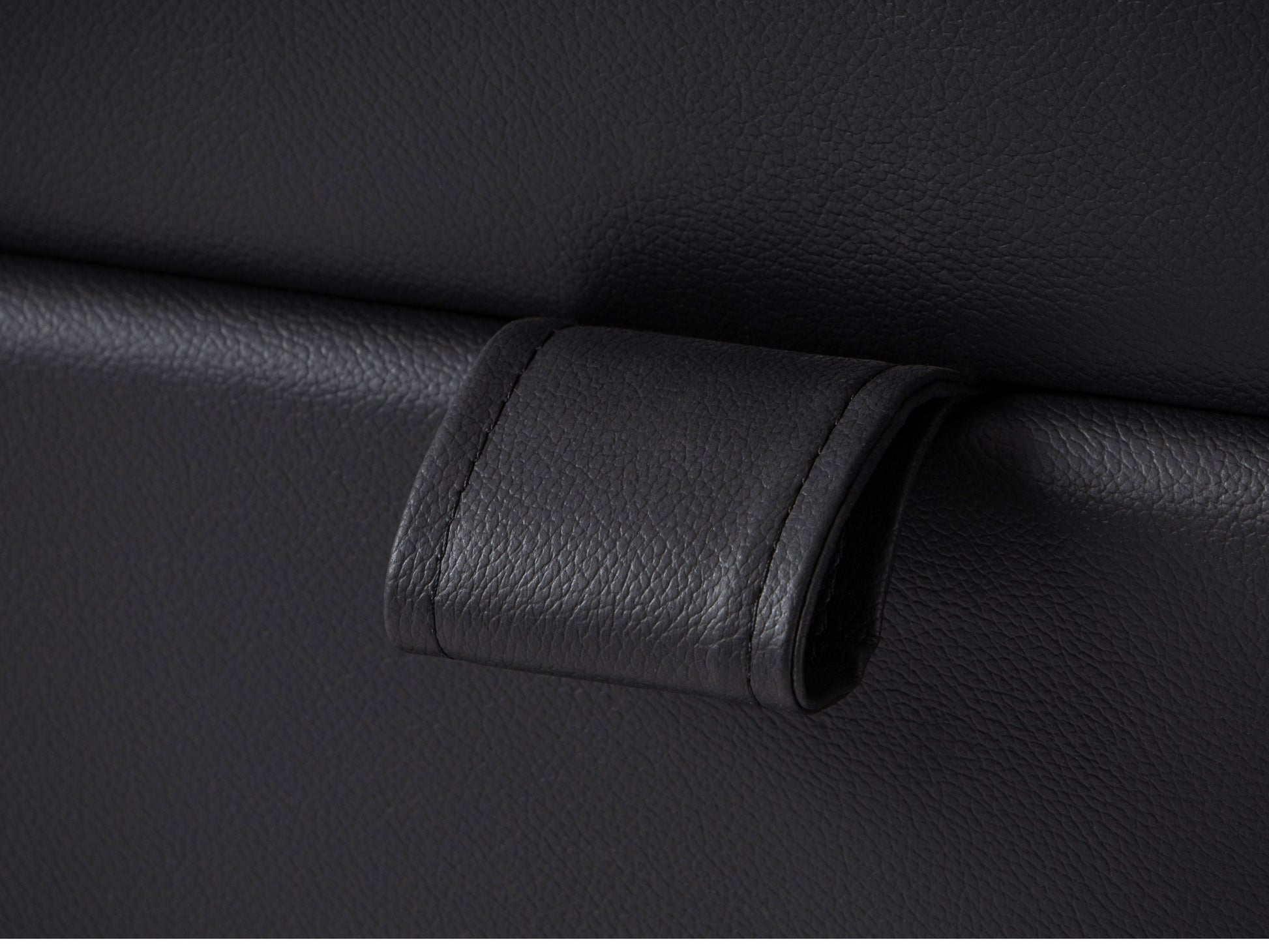 Dive into the everyday luxury of our vegan leather storage ottoman, where comfort meets contemporary design in the heart of your living space. A large ottoman serves as both an accent and centerpiece. It gives you a place where stories come to life, from quiet mornings with a book to lively evenings with friends. Available in black or brown vegan leather, its quiet luxury will speak to your sense of modern style. And with its clever hidden storage, you'll find your space stays effortlessly tidy, allowing for more of those unplanned, precious moments that life is all about.