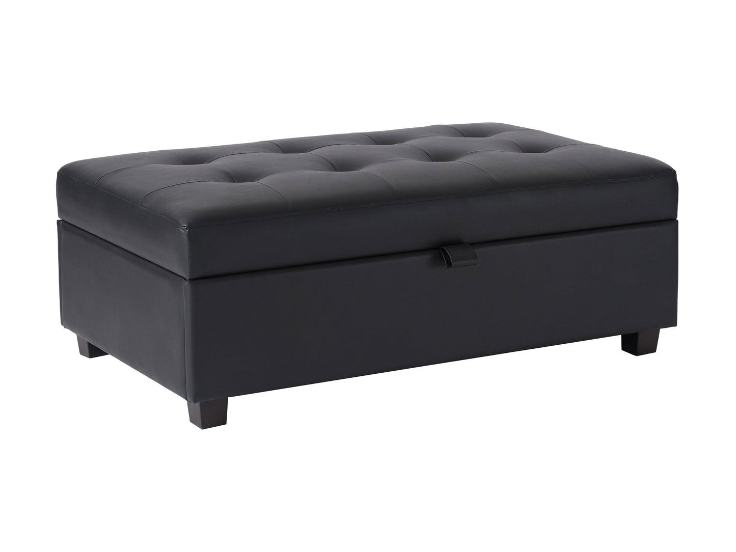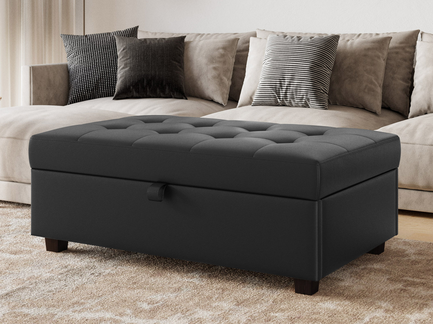 The Aubin Vegan Leather Storage Ottoman isn't just about filling a spot in your room; it's about enhancing your daily living with a blend of functionality and flair. The sleek lines and tufted detailing add a contemporary twist that can elevate any decor, while the plush comfort invites you to relax and stay a while. Designed to fit seamlessly into your life, it offers a practical solution to your needs—be it as a footrest, extra seating, extra storage, or a chic alternative to the traditional coffee table. Why wait? Transform your space today with the Aubin Ottoman.
