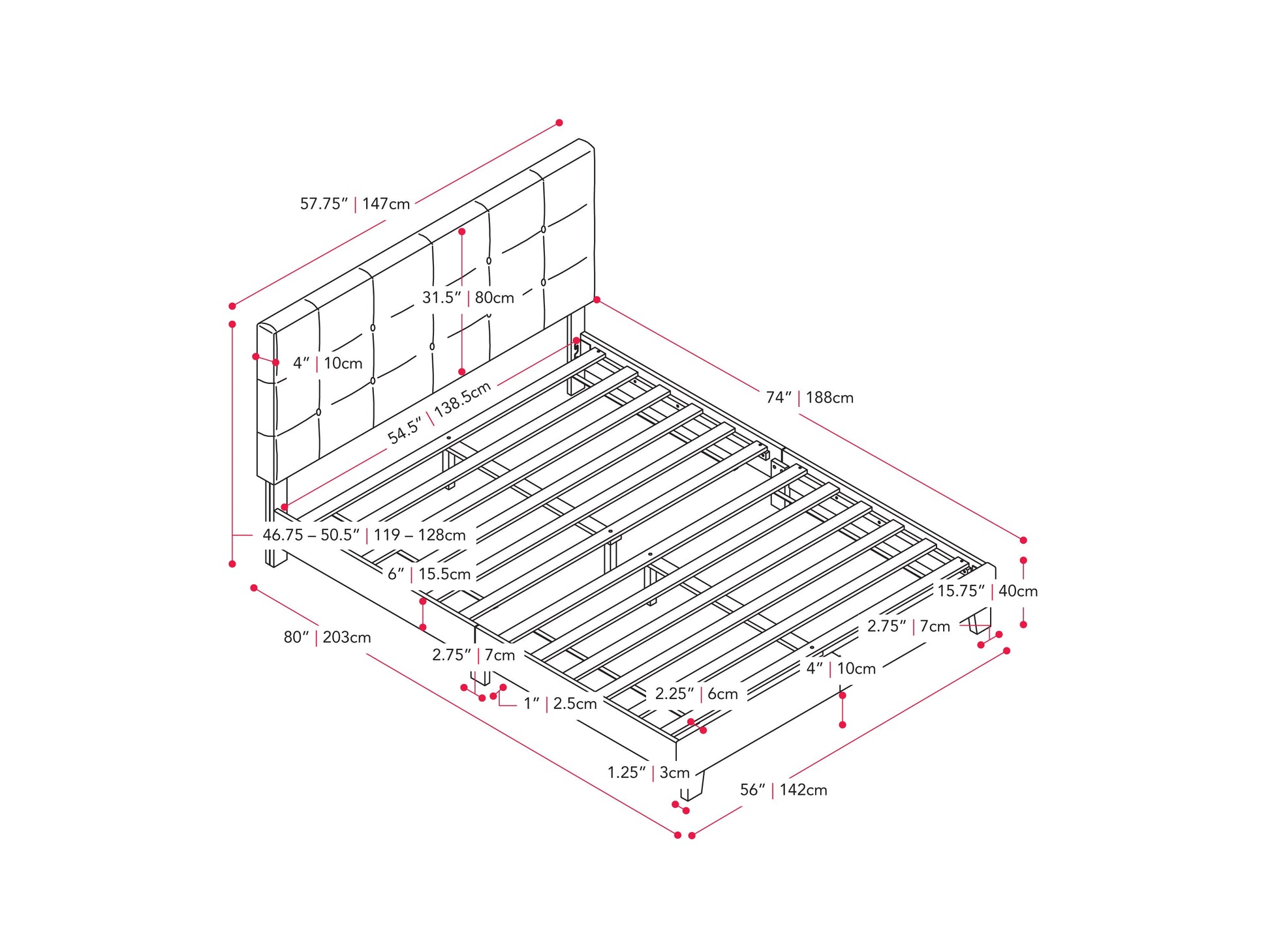 - Slat Support System: Engineered slat system eliminates the need for a box spring, saving you time and money without compromising support